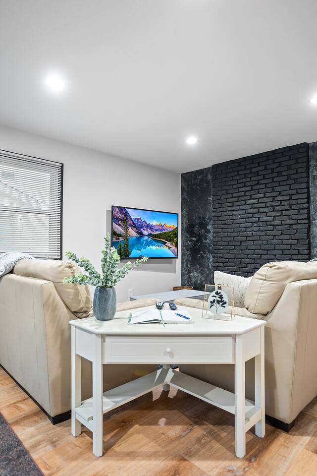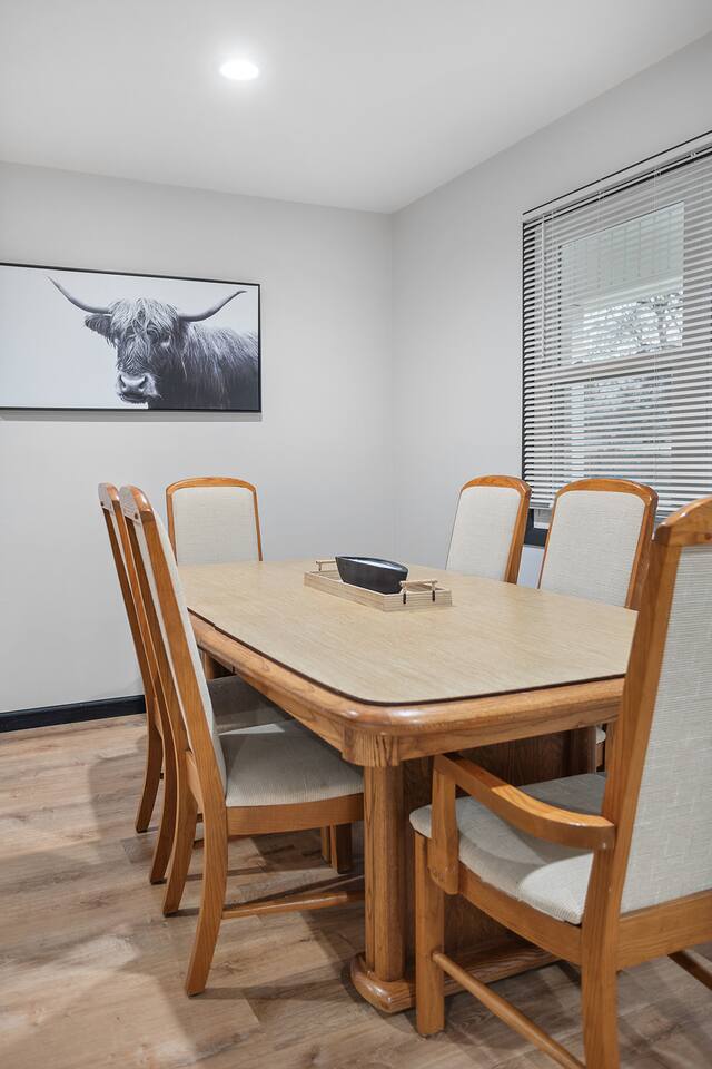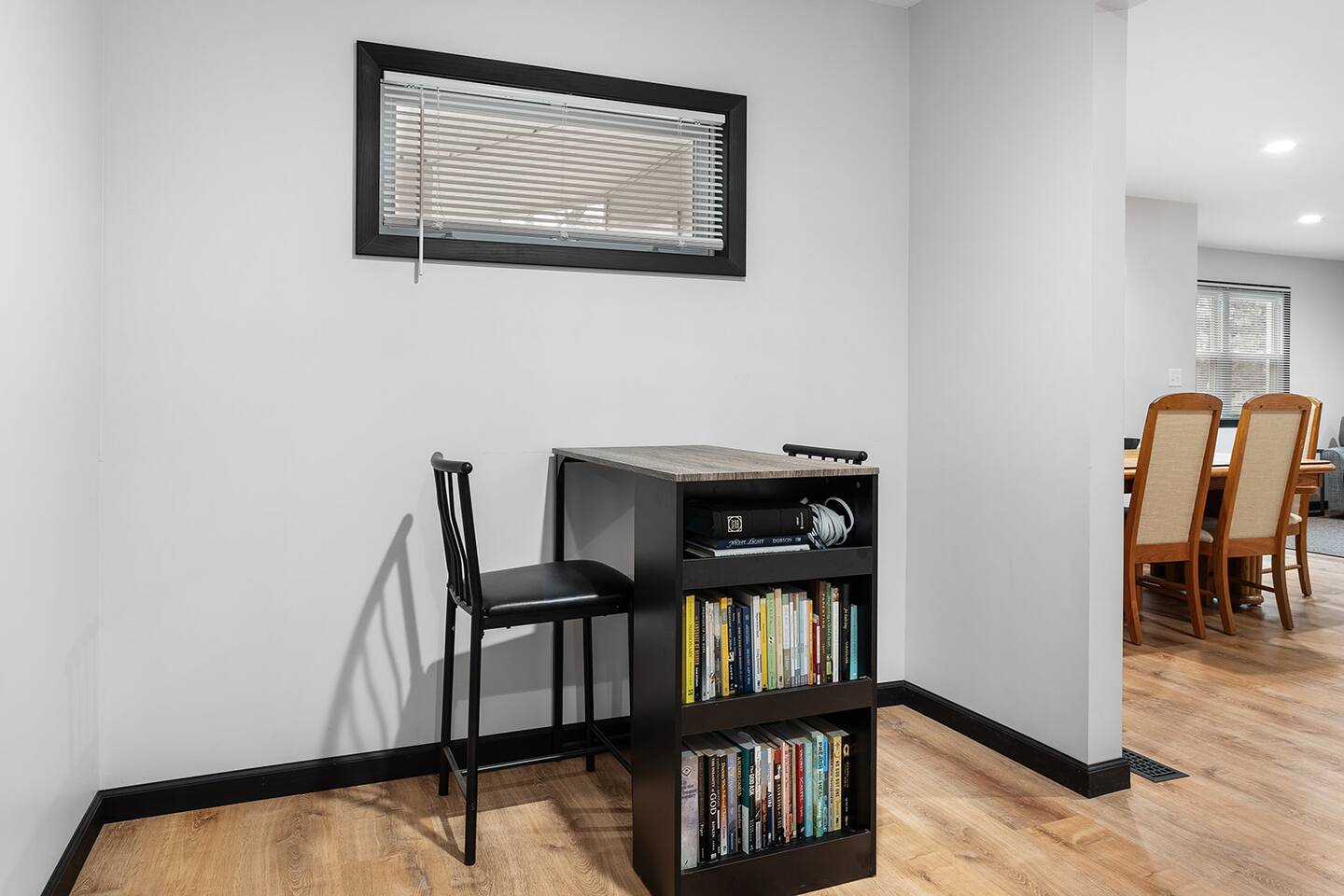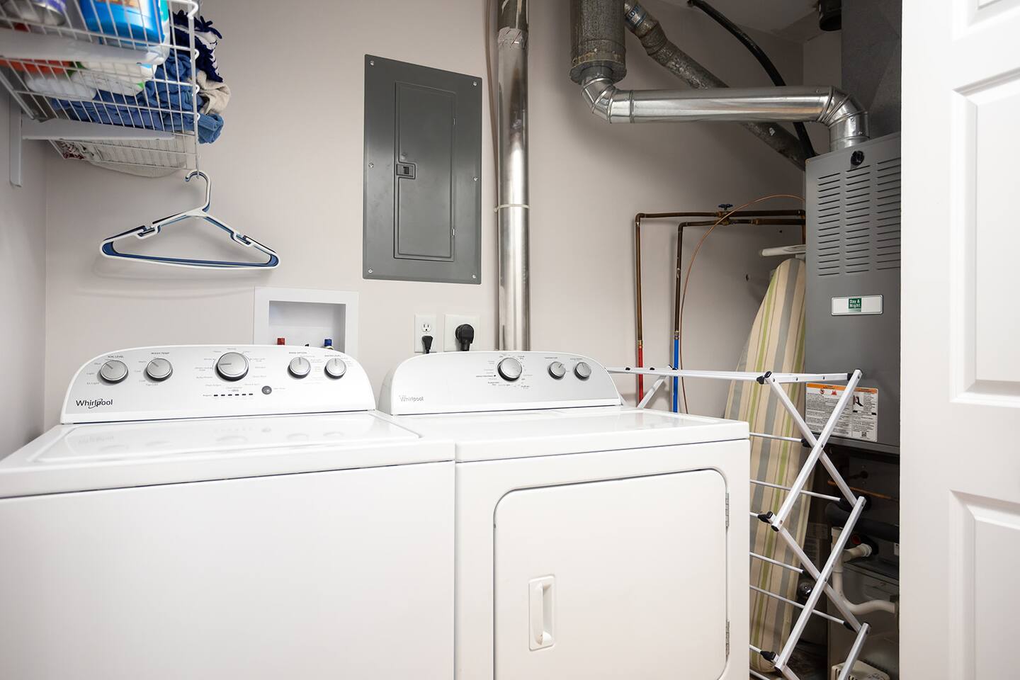In total you'll find two full bedrooms and a third flex room, complete with workout equipment and a roll-away full bed. In the first bedroom you have a queen sized bed and the second has a twin bed bunked over a queen bed. You'll find the kitchen fully equipped and ready for you to whip up some tasty cakes or whatever other goodness your heart desires, and you'll have space to dine together, work from home as needed, and a central location from which to explore the greater Lafayette area.